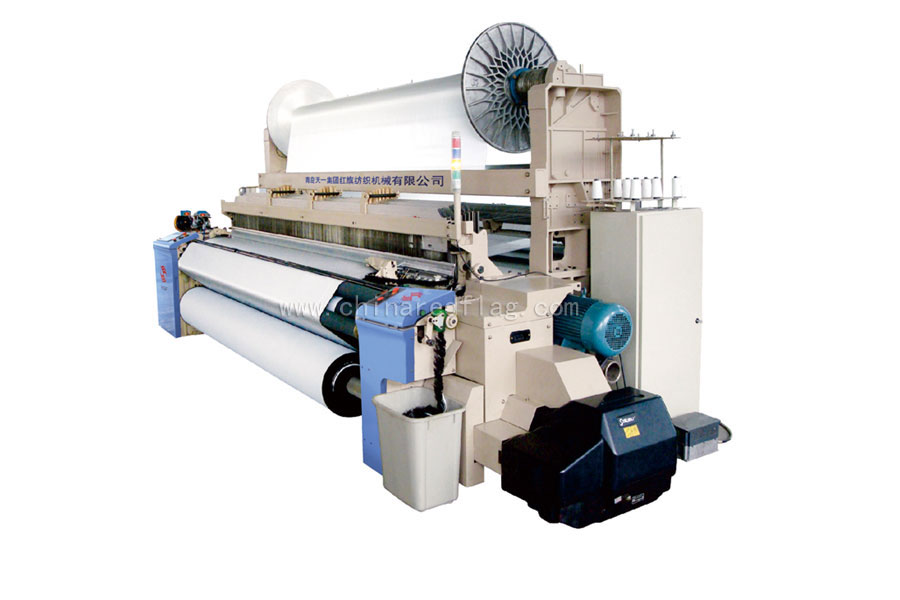 我司新研發(fā)的JA92上下雙重織軸高檔寬幅噴氣織機(jī)是針對(duì)紡織企業(yè)開發(fā)高附加值雙面織物、色織物研發(fā)而成,該產(chǎn)品具有筘幅寬、轉(zhuǎn)速高、織物范圍廣、品種適應(yīng)性強(qiáng)(可應(yīng)用于棉、毛、絲、麻、化纖等各個(gè)紡織行業(yè))、織造效率高、自動(dòng)化程度高、性能穩(wěn)定可靠等特點(diǎn),為紡織企業(yè)解決了開發(fā)高附加值雙面織物時(shí)遇到的漿紗和織造的難題,是紡織企業(yè)開發(fā)高檔織物產(chǎn)品(高檔單面亮光雙面滌彈絲遮光布、高檔家紡布、色織布)提高產(chǎn)品質(zhì)量、降低勞動(dòng)成本、減少環(huán)境污染、提高經(jīng)濟(jì)效益的設(shè)備。性能指標(biāo):公稱筘幅為190-360cm(可根據(jù)用戶需求生產(chǎn)相應(yīng)的筘幅),上、下織軸盤片直徑φ800mm(或φ914mm)、主軸轉(zhuǎn)速400-750rpm(實(shí)際車速根據(jù)織物規(guī)格確定)、筘幅可調(diào)范圍0-800mm、適用織造長(zhǎng)絲或短纖、卷布直徑550mm、上下織軸經(jīng)紗雙伺服控制、電子多臂開口(16片)、電子卷取(機(jī)械卷取)、10.4〞觸摸液晶顯示智能電腦控制 。
